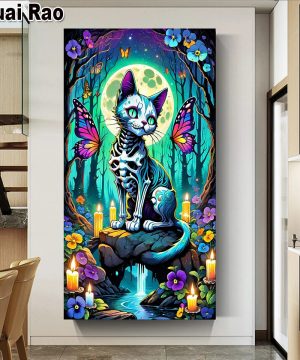 Gothic Diamond Painting mit Fledermauskatze und Totenkopf