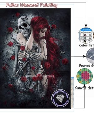 Gothic DIY Diamond Painting mit Totenkopf und Mädchen, 5D