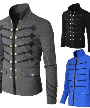 Gothic Herren Steampunk Mantel mit Military-Design