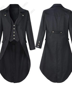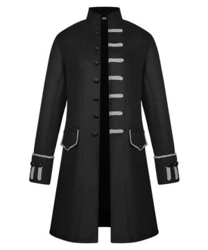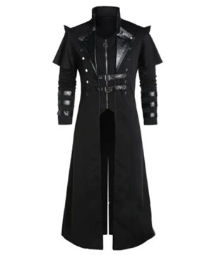 Gothic Herren Steampunk Mantel im Military-Stil – Schwarz