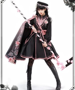 Gothic Dark Pink Cosplay Kleid im Military-Stil