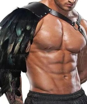 Gothic Schulterrüstung mit Federn – Mittelalter Cape