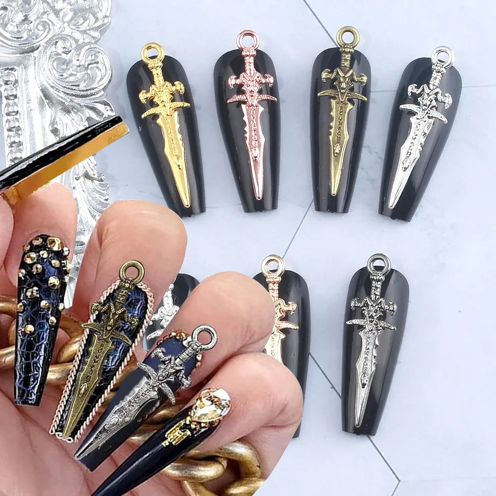 Entdecken Sie unser exklusives 10-tlg. Gothic Nagel-Charms Set mit Schwertern & Strass – die perfekte Wahl für alle, die detailverliebte Nail Art und einen düsteren Gothic-Stil lieben. Diese auffälligen Nail Charms sind mehr als nur ein Accessoire – sie verwandeln jedes Nageldesign in ein kleines Kunstwerk mit düsterem Flair und edlem Glanz. Ob für besondere Anlässe, Halloween oder den täglichen Ausdruck deines individuellen Styles – dieses Set bringt Einzigartigkeit auf deine Fingerspitzen.