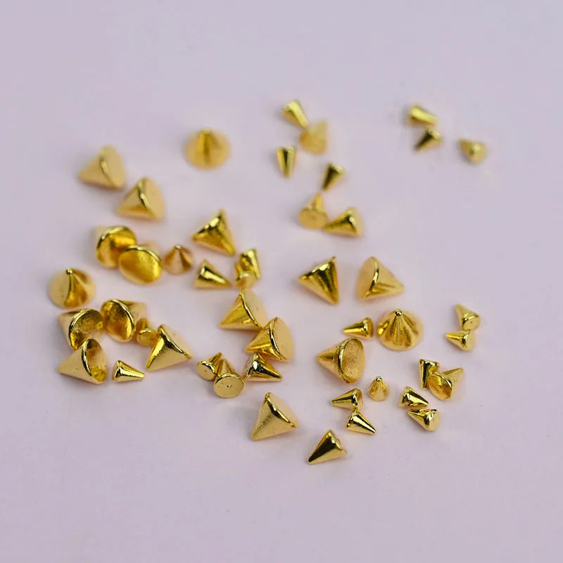 Entdecke das 150-tlg. Gothic Nagelstuds Set – Gold/Silber/Schwarz, dein ultimativer Begleiter für dramatische Nail Art im Gothic- und Punkstil. Mit flachen Kegelnägel-Designs in metallischen Farben verleiht dieses Set deinen Nägeln im Handumdrehen einen rebellischen Look. Perfekt geeignet für kreative Nail Designs, Cosplay-Looks oder einfach als Statement im Alltag – dieses Gothic Nagelstuds Set macht deine Maniküre zu einem echten Blickfang.