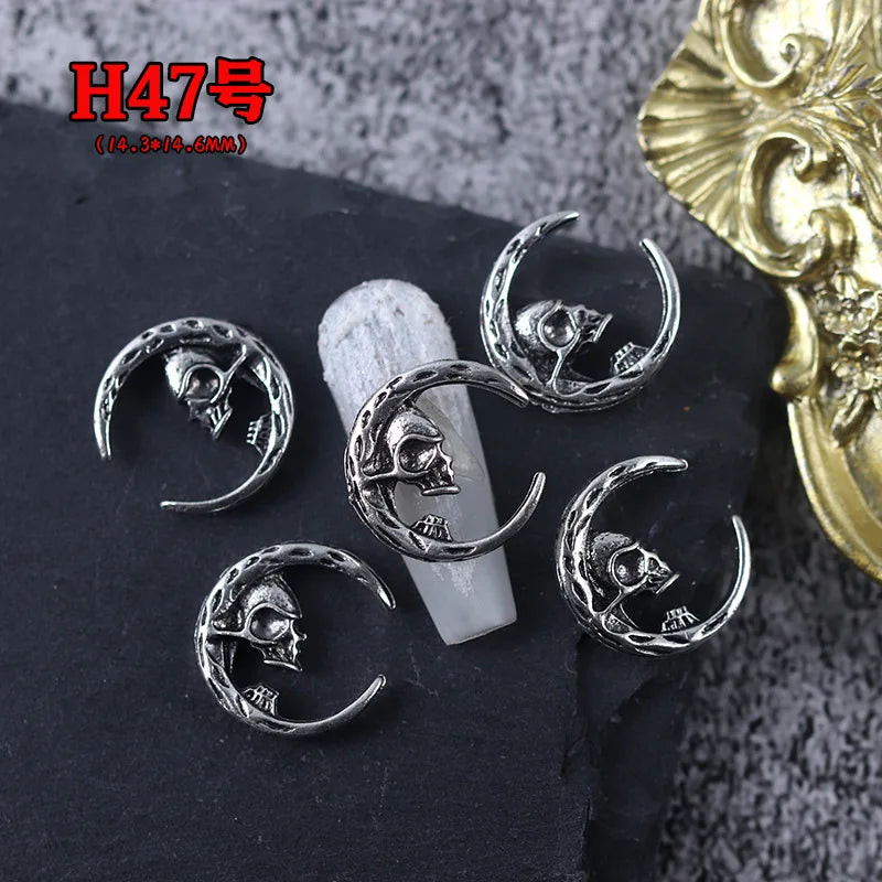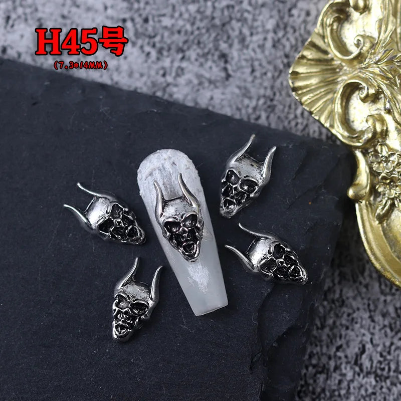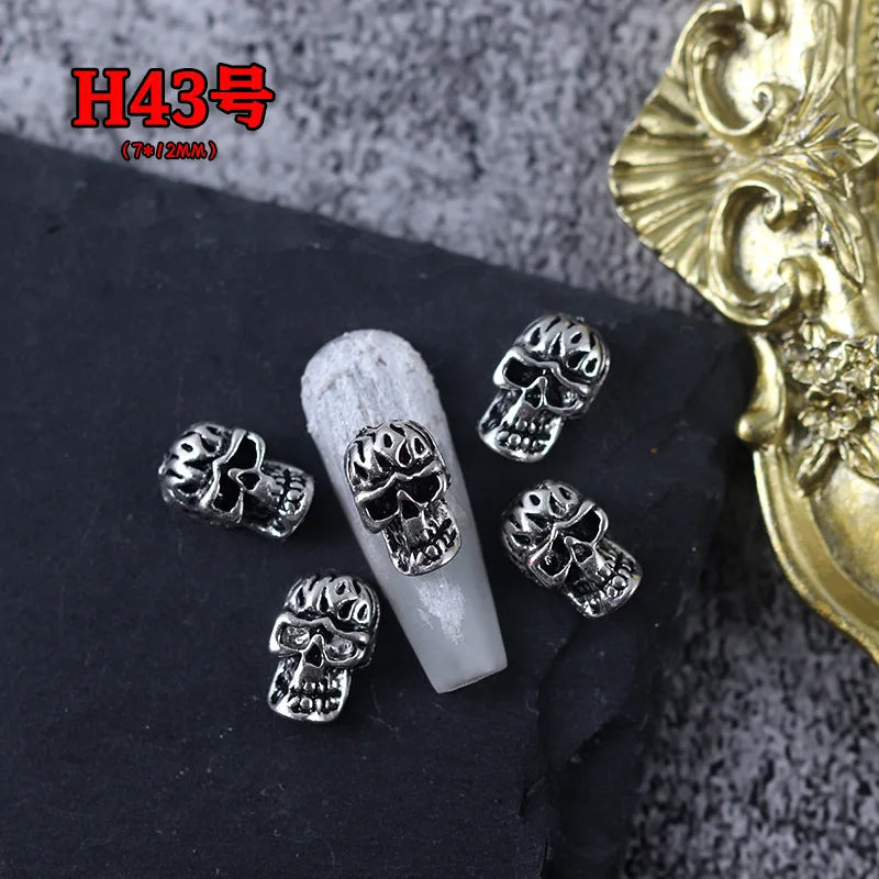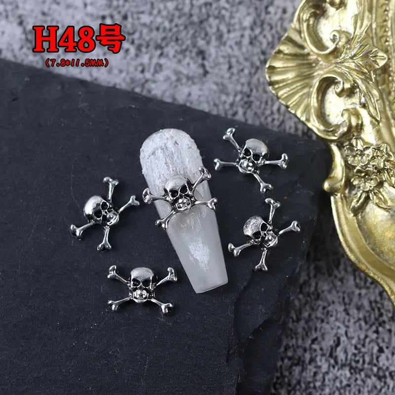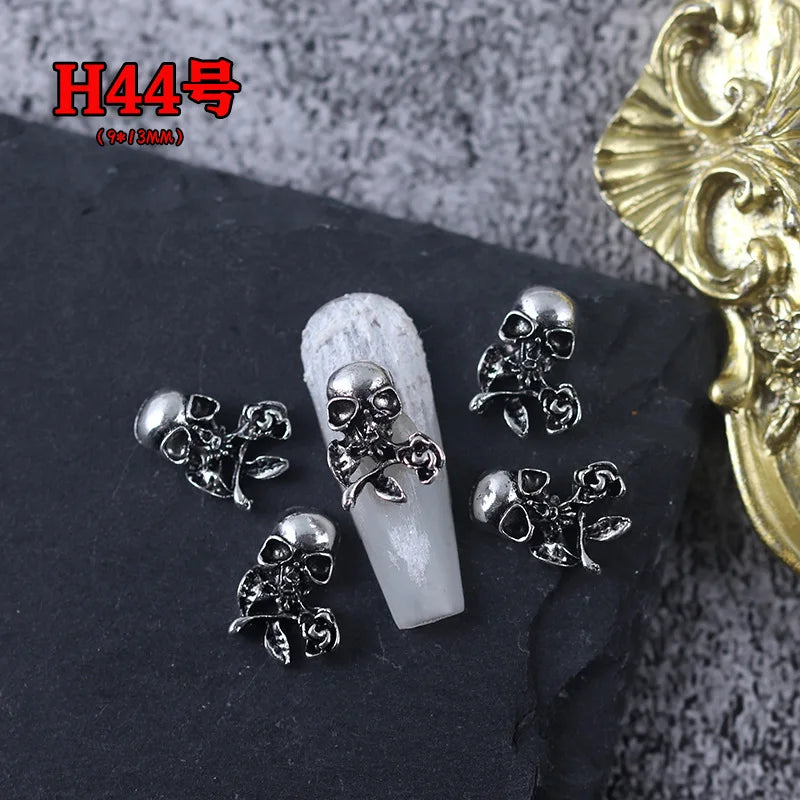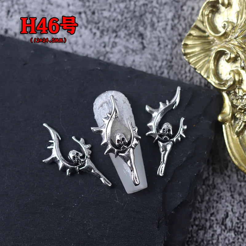 20PCS Gothic Antik Silber Totenkopf Nagelkunst Deko Set