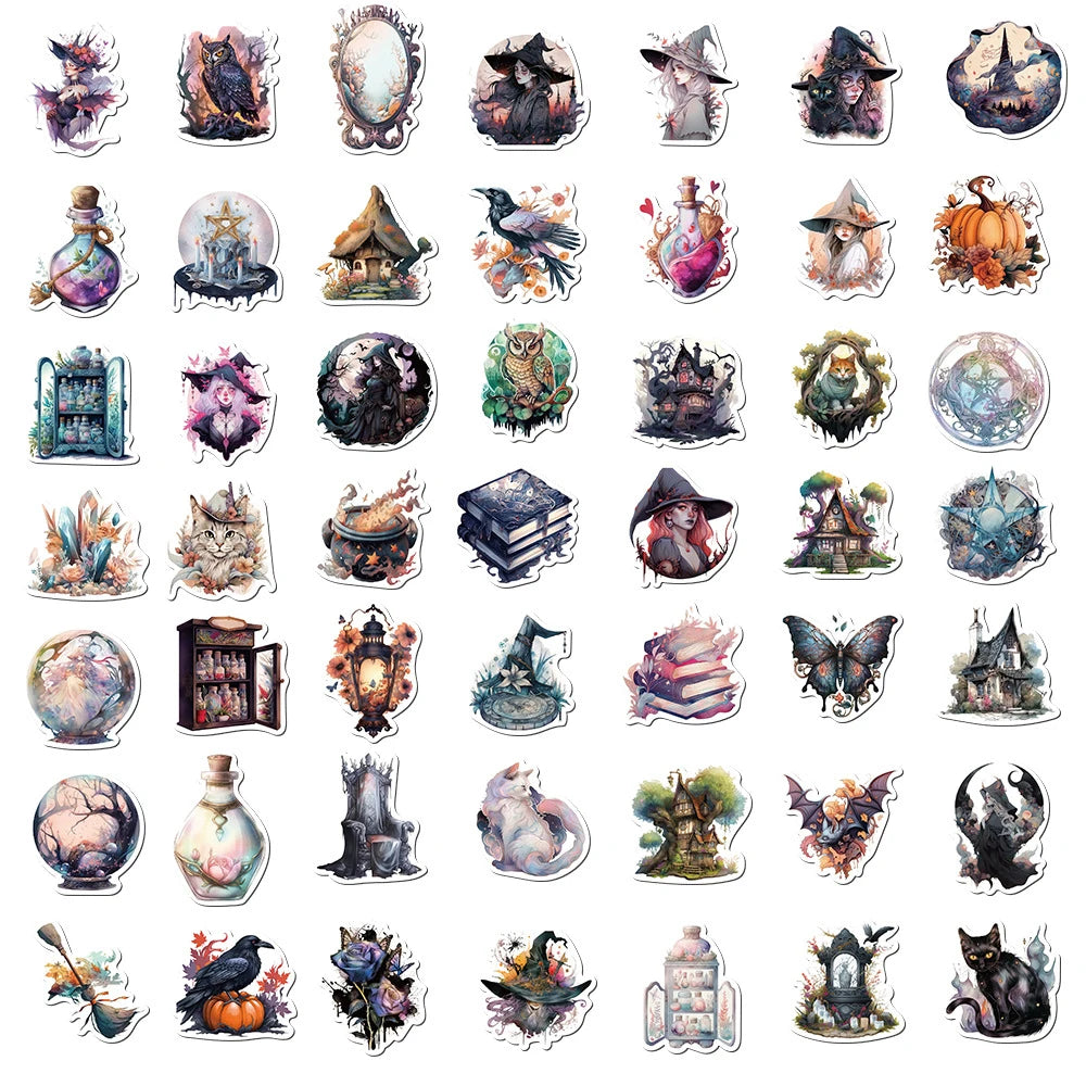 50 Stück Gothic Hexe Aufkleber Set – Coole Deko Sticker