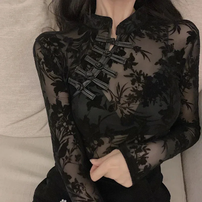 - Elegant und rebellisch: Der Mao-Kragen und die filigrane Spitzenstruktur sorgen für einen Hauch von Weiblichkeit und Raffinesse.