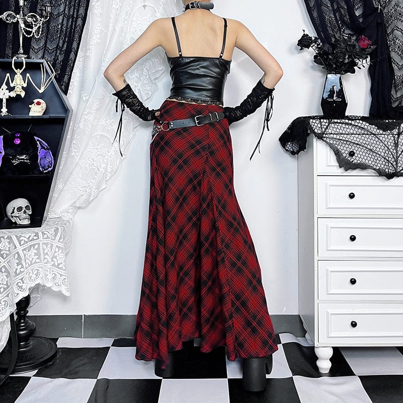Damen-Fischschwanzrock mit Grunge-Karomuster