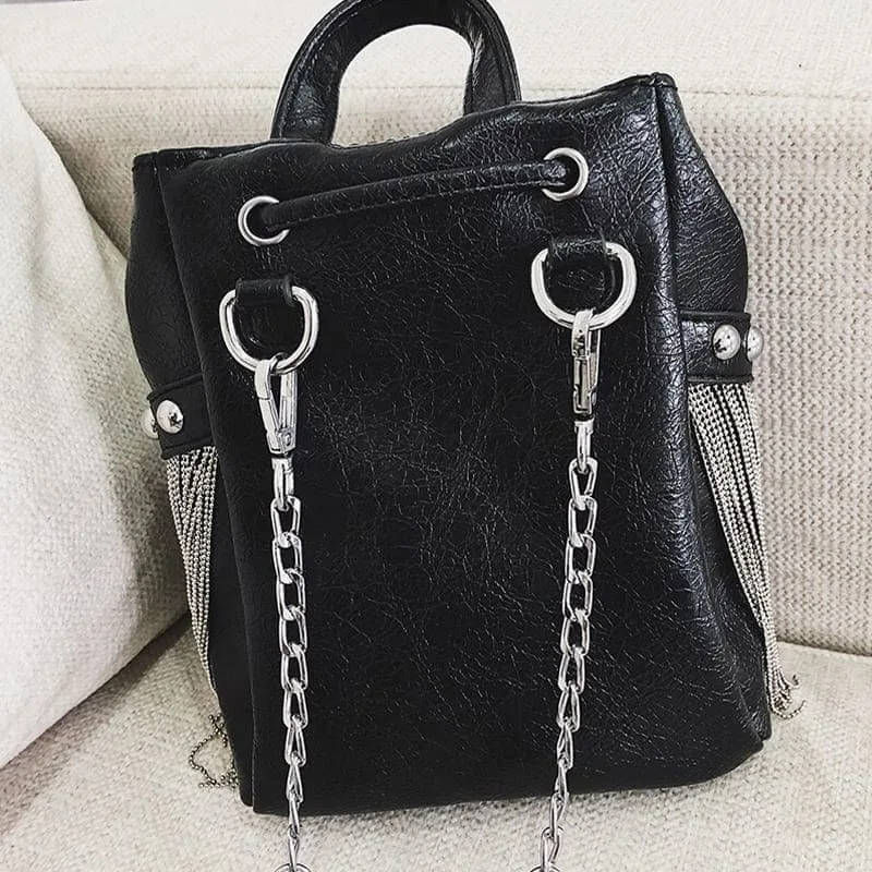 Entdecken Sie die Damen Gothic Handtasche, die perfekte Ergänzung für Ihren Gothic- oder Punk-Look. Hergestellt aus hochwertigem Leder und verziert mit silbernen Nieten und dekorativen Ketten, verleiht diese außergewöhnliche Handtasche jedem Outfit einen rebellischen und doch raffinierten Touch. Dank der multifunktionalen Tragemöglichkeiten als Handgriff oder als Umhängetasche, eignet sich diese Tasche ideal für den Alltag.