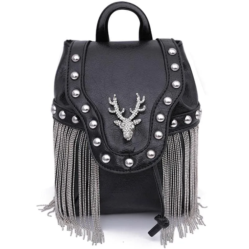 • Punk- und Rock-Ästhetik: Die silbernen Nieten und Ketten unterstreichen das rebellische Design, perfekt abgestimmt auf einen Gothic-inspirierten Stil.