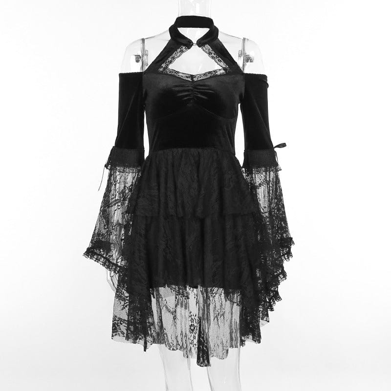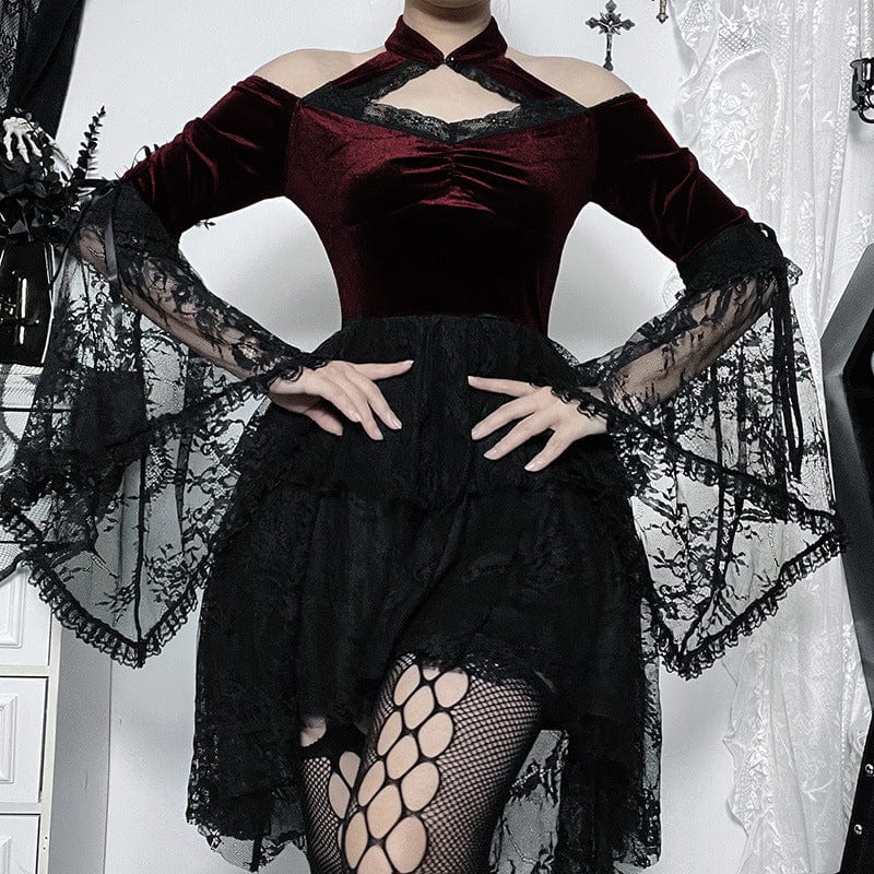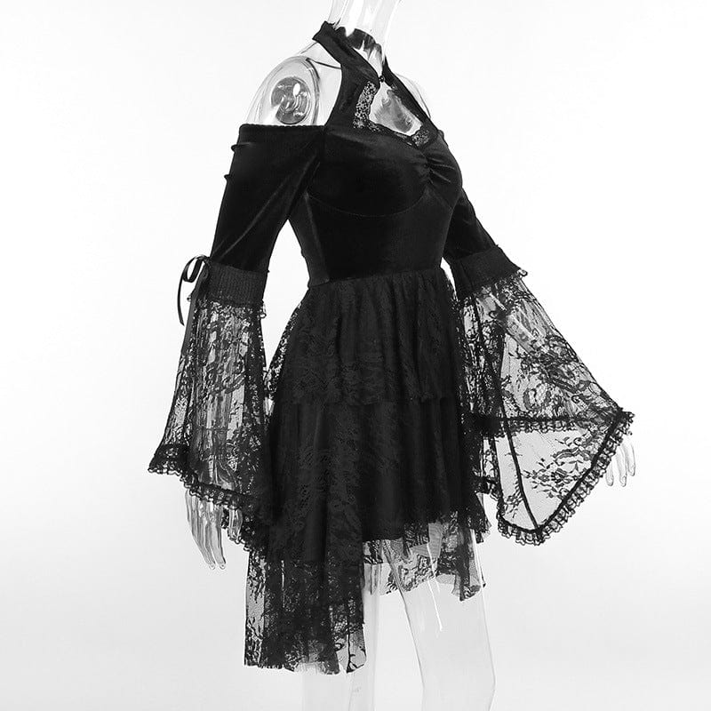 Damen-Gothic-Kleid aus Spitzensamt mit Trompetenärmeln