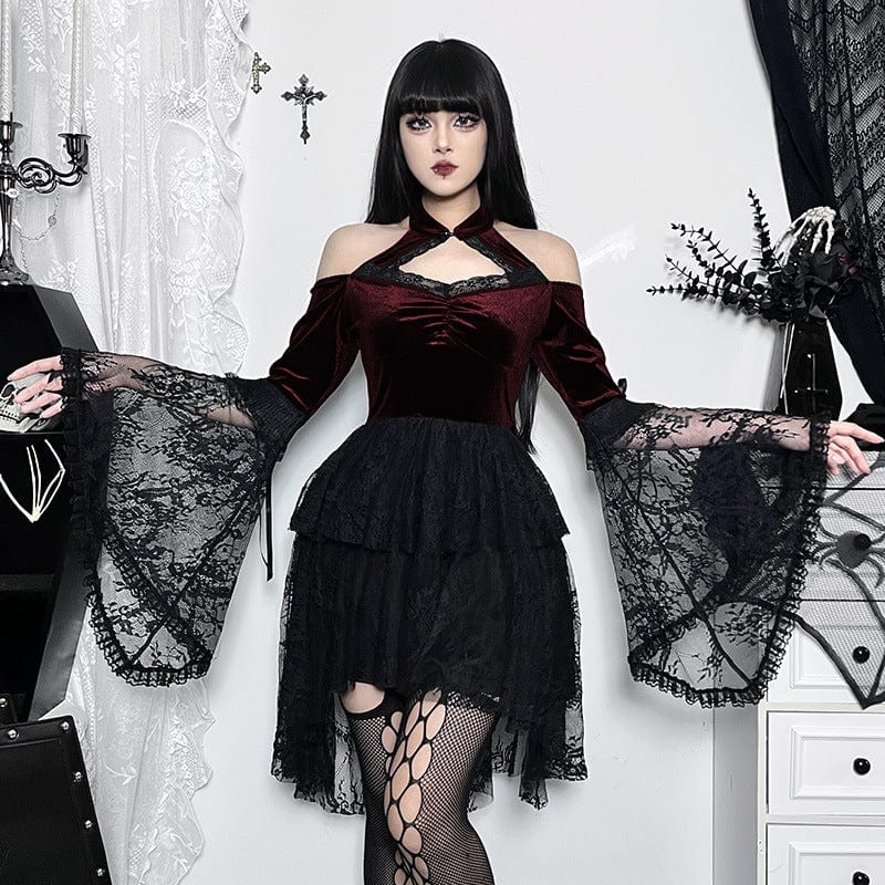- Exquisites Design: Die Trompetenärmel und der Spitzensamt schaffen einen beeindruckenden Gothic-Stil, der majestätisch und originell ist.