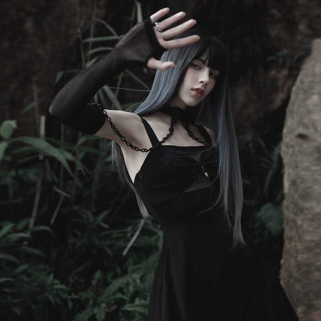 Damen-Gothic-Mesh-Armstulpen mit abnehmbarem Halsband