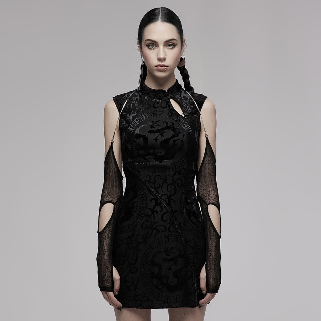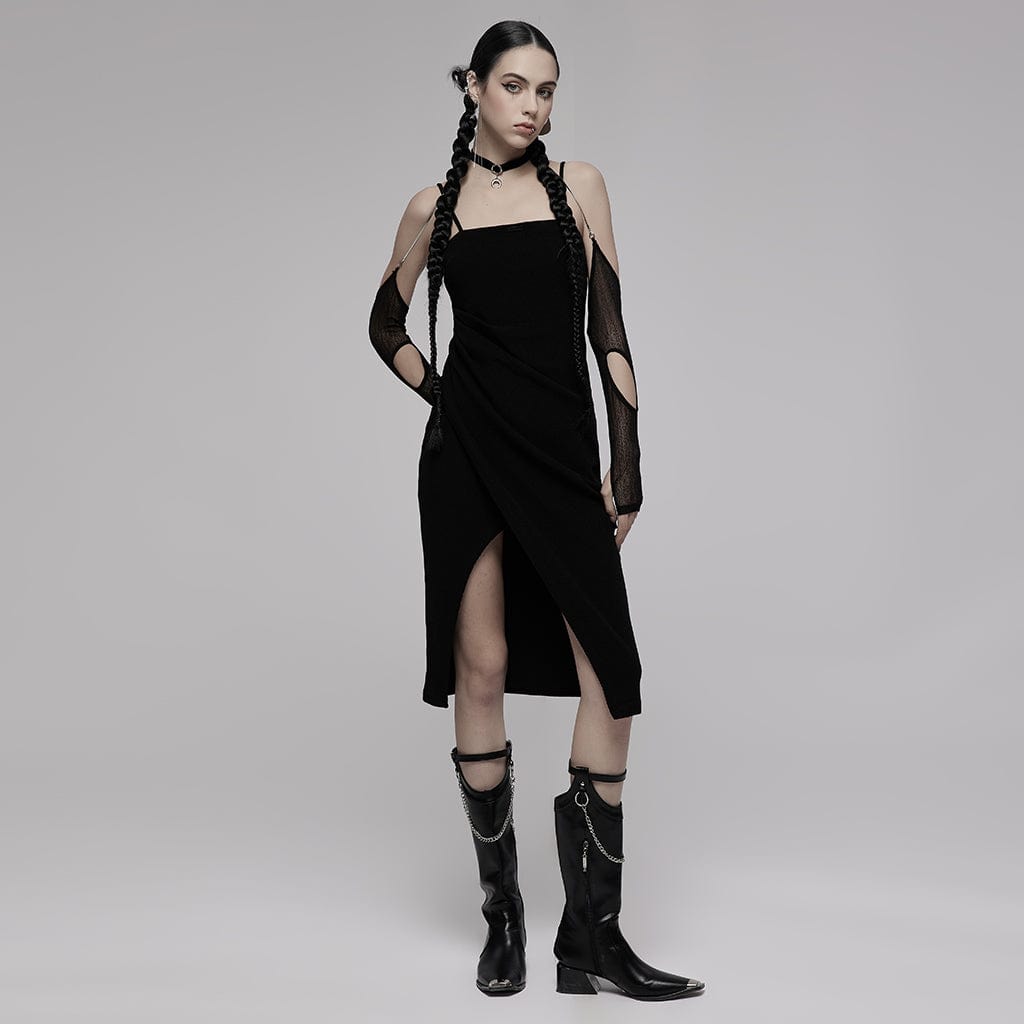 Damen-Gothic-Neckholder-Armstulpen mit Ausschnitt und Netzstoff