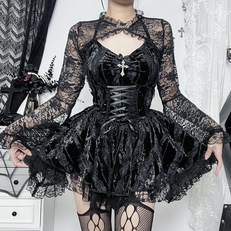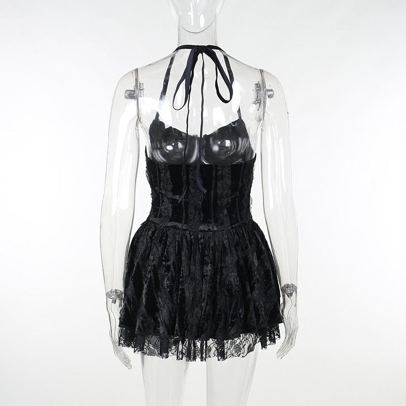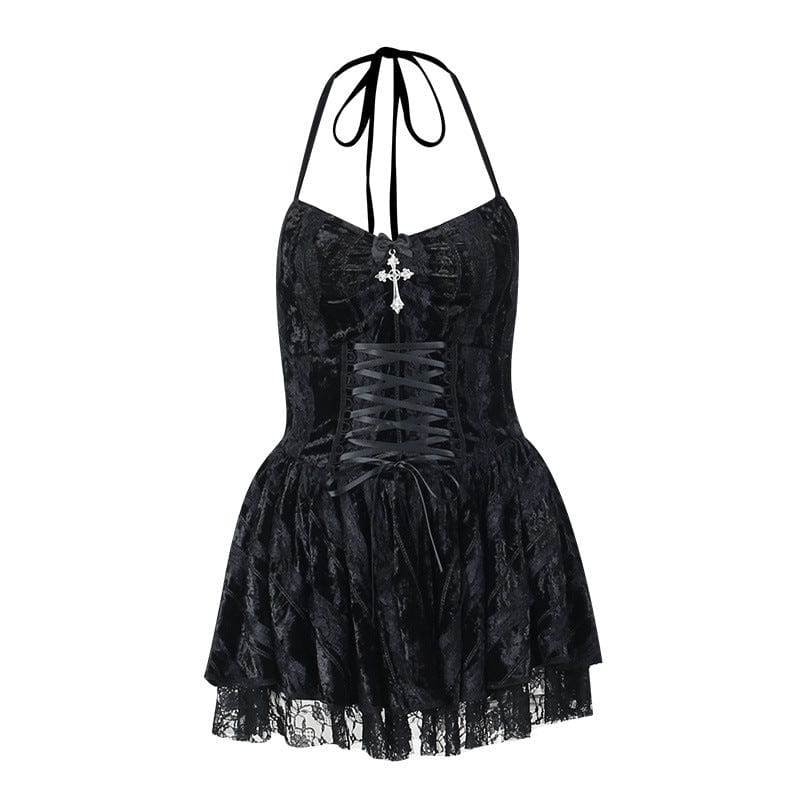 Damen-Gothic-Slipkleid aus Samt mit Neckholder und Schnürung