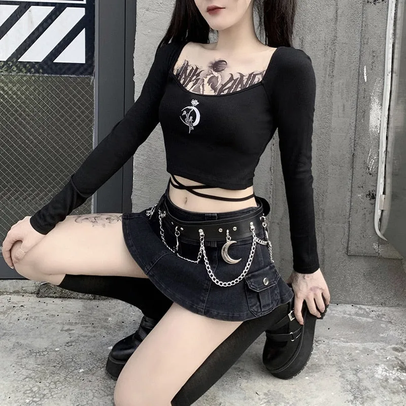Damen Gothic T Shirt Crop Top
