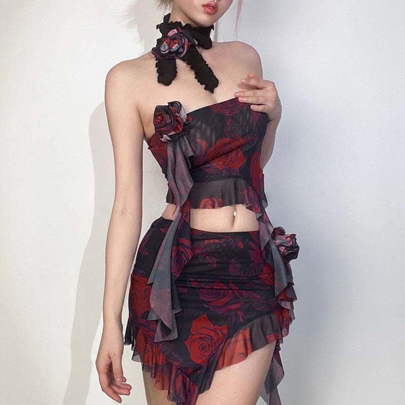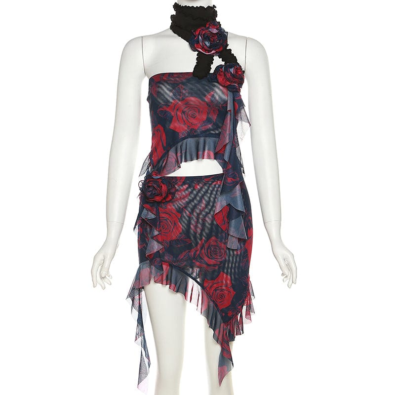 Verpassen Sie nicht die Gelegenheit, Ihr Outfit mit diesem Damen-Grunge-Kleid mit unregelmäßigen Rosen-Rüschen und Neckwear um ein luxuriöses Highlight zu ergänzen. Ideal für besondere Momente und ein Muss für jeden Gothic-Look-Liebhaber!