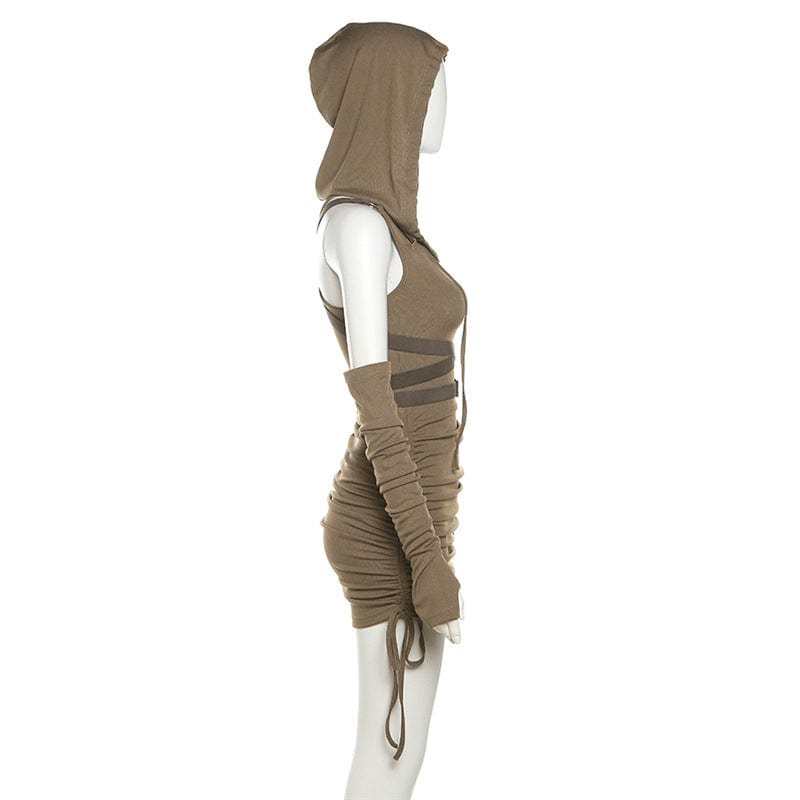 Damen-Grunge-Kordelzugkleid mit Kapuze und Ärmelärmeln