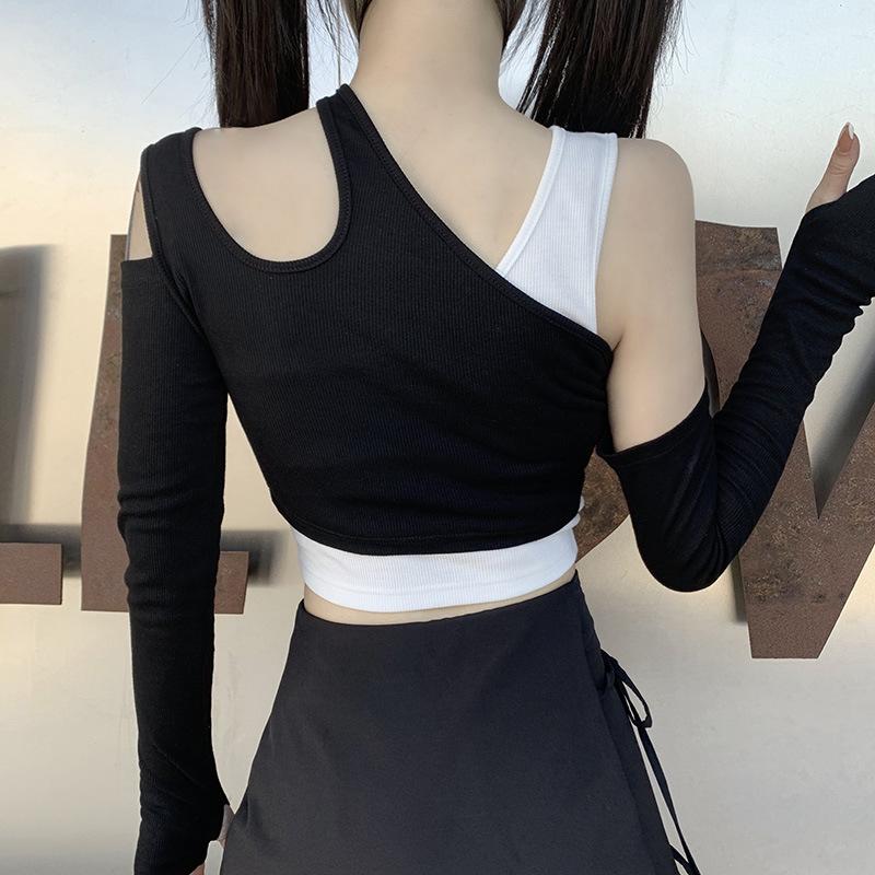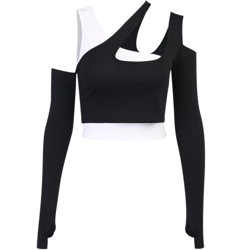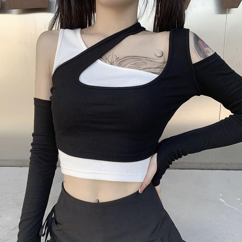 Entdecke stylische Damen-Grunge-Oberteile mit langen Ärmeln und einzigartigen gespleißten Fäustlingen – perfekt für einen coolen und lässigen Look!