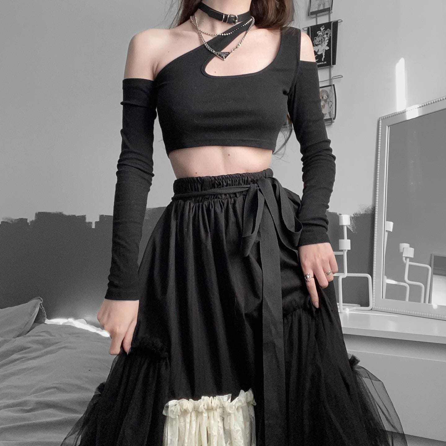 Kombinieren Sie dieses Damen-Grunge-Oberteil mit einer Gothic-Leggings oder einem anderen Gothic-Oberteil für einen herausragenden Look. Vergessen Sie nicht, das Outfit mit unseren Gothic-Handschuhen zu vervollständigen, um den Grunge-Stil zu betonen.