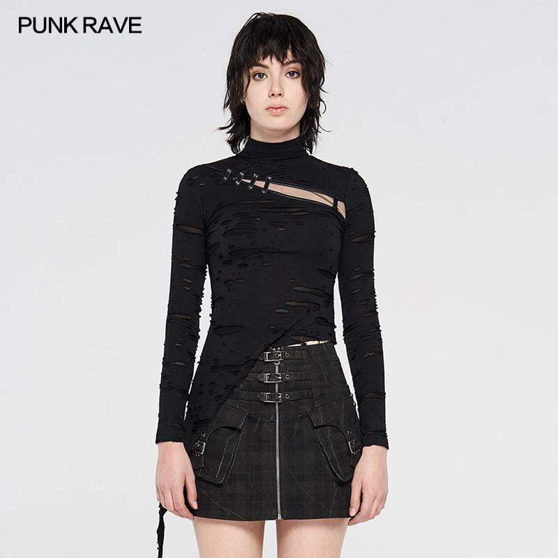 Damen-Hemden im Gothic-Stil mit Stehkragen und asymmetrischem Ausschnitt