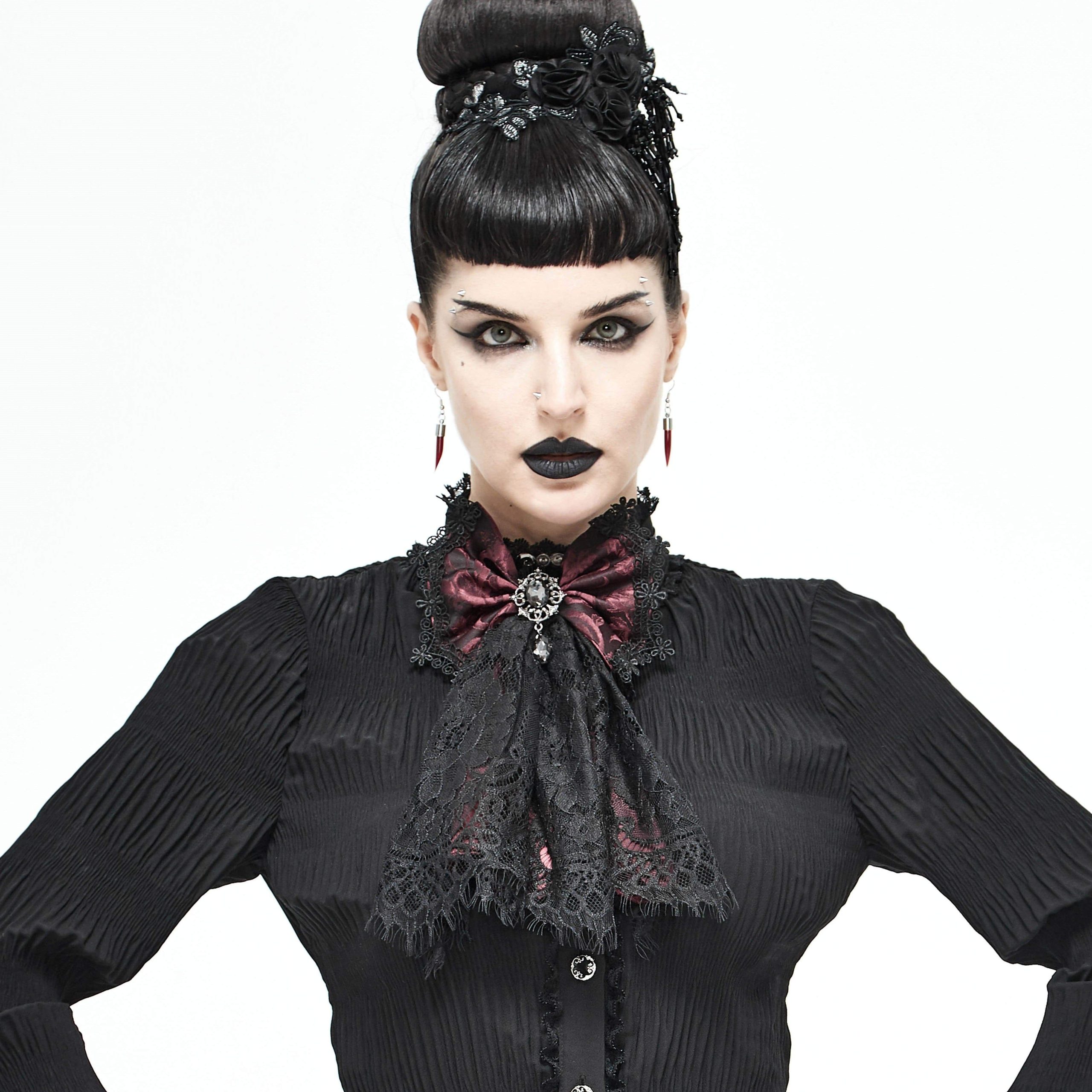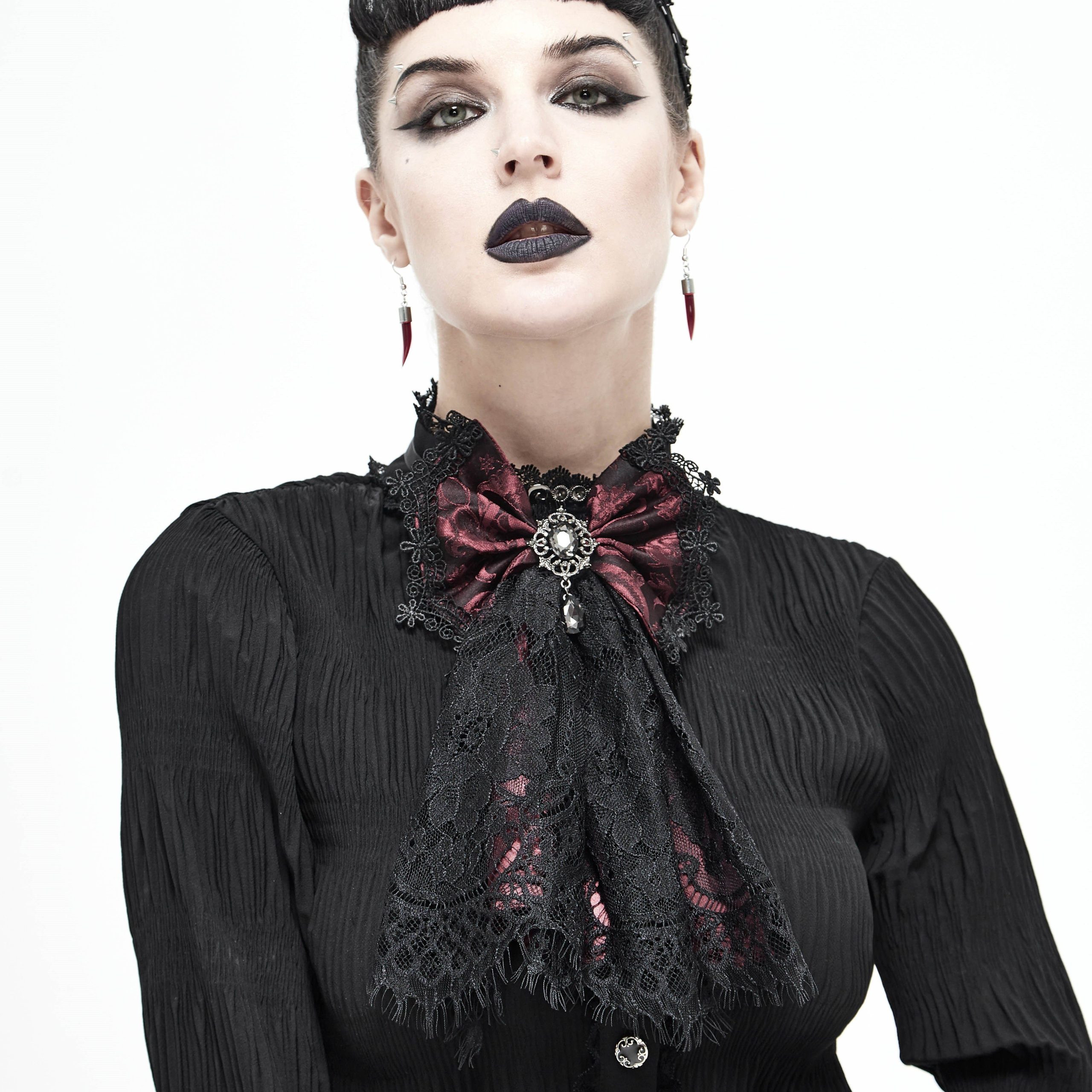 Fügen Sie Ihrem Kleiderschrank dieses einzigartige Damen-Kragen aus Gothic-Spitze mit Schleife und Schleife in Rot hinzu und setzen Sie ein modisches Statement. Warten Sie nicht, sondern verleihen Sie Ihrem Gothic-Stil den letzten Schliff mit diesem außergewöhnlichen Accessoire!