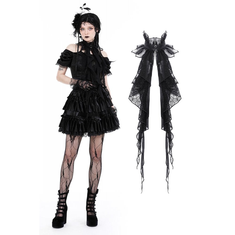 Erleben Sie die Eleganz der Damen-Krawatte mit unregelmäßiger, gerüschter Spitze im Gothic-Stil, ein Must-Have-Accessoire für alle Liebhaber des Gothic-Looks. Gefertigt aus hochwertigem Mesh und Polyester, liefert dieses Stück nicht nur exzellente Haltbarkeit, sondern auch eine außergewöhnliche Ästhetik. Der Spitzenstoff ist kunstvoll mit einem Spinnennetz-Muster versehen, das Ihrem Look eine geheimnisvolle Note verleiht. Perfekt geeignet für besondere Anlässe oder extravagante Alltagskombinationen, hebt sich dieses außergewöhnliche Accessoire durch seinen eleganten standesgemäßen Kragen mit unregelmäßigen Rüschen ab.