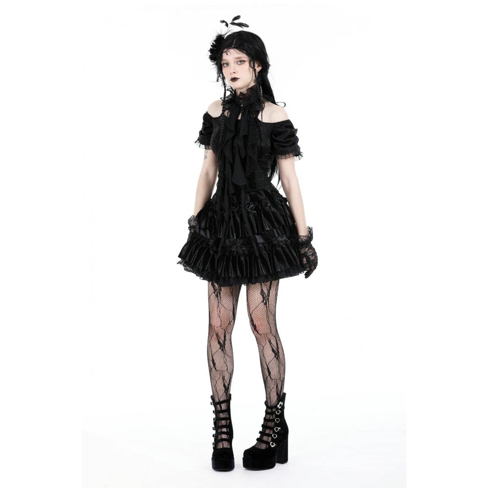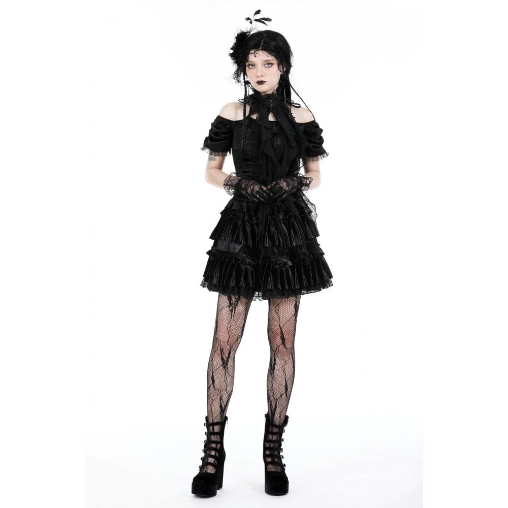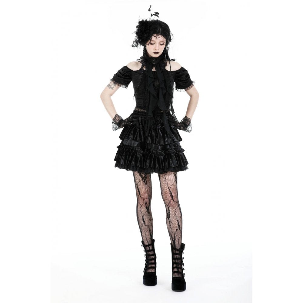 Paaren Sie die Damen-Krawatte mit unregelmäßiger, gerüschter Spitze im Gothic-Stil mit einem eleganten Cape oder einer Kapuze im Gothic-Stil, um ein beeindruckendes Outfit zu kreieren. Ergänzen Sie Ihren Look mit einer Auswahl an Gothic-Bekleidungsstücken oder verleihen Sie Ihrem Stil ein romantisches Flair mit den Gothic Romance Outfits.