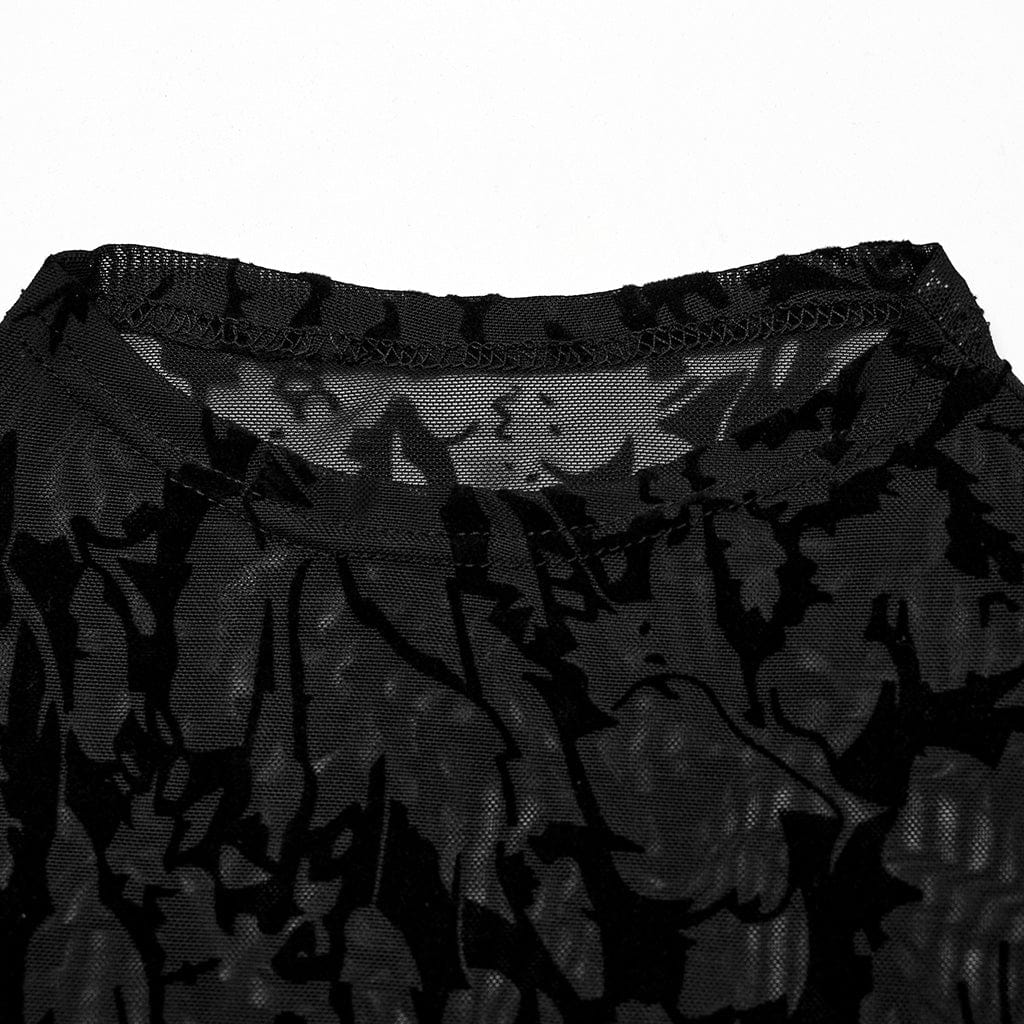 Damen-Oberteil aus transparentem, beflocktem Gothic-Mesh in Übergröße
