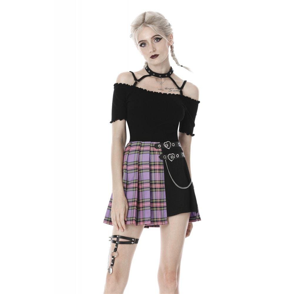 Kombinieren Sie den Damen Punk Fake-zweilagige Plaid-Faltenröcke mit einem passenden Gothic-Unterteil oder tragen Sie dazu eine coole Shorts und Rock-Kombination, um Ihre Individualität hervorzuheben. Ergänzen Sie Ihren Look mit unserer Gothic Punk Steampunk Mode für ein atemberaubendes Outfit.