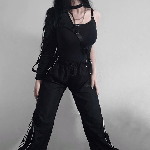 Kombinieren Sie diese Damen-Punk-Freizeithose mit Kordelzug mit einem Gothic Oberteil oder einem Gothic Punk Accessoire, um einen authentischen Punk-Look zu kreieren. Ergänzen Sie das Outfit mit unseren Gothic Leggings, falls es kühler wird.