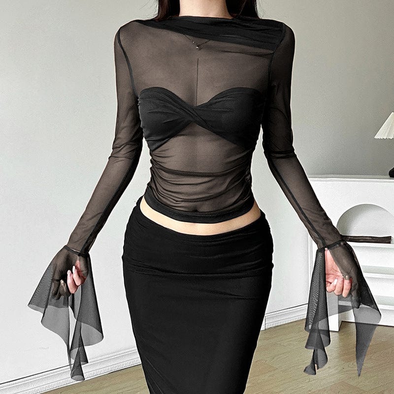Damen-Punk-Hemd mit ausgestellten Ärmeln und zweiteiligem Netzstoff