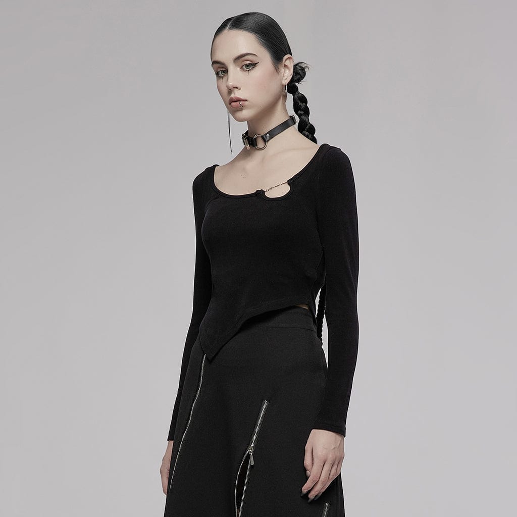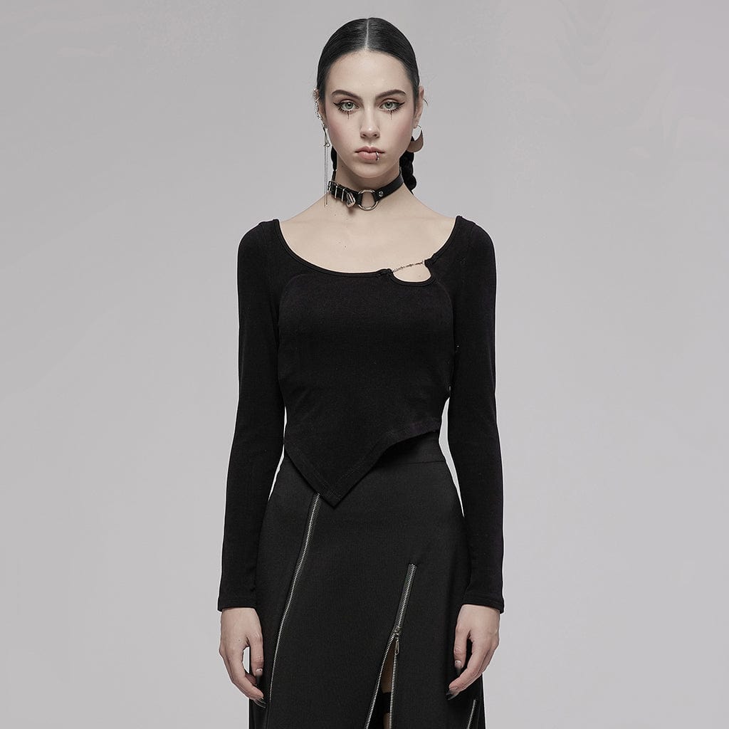 Damen-Punk-Hemd mit unregelmäßigem Saum und langen Ärmeln
