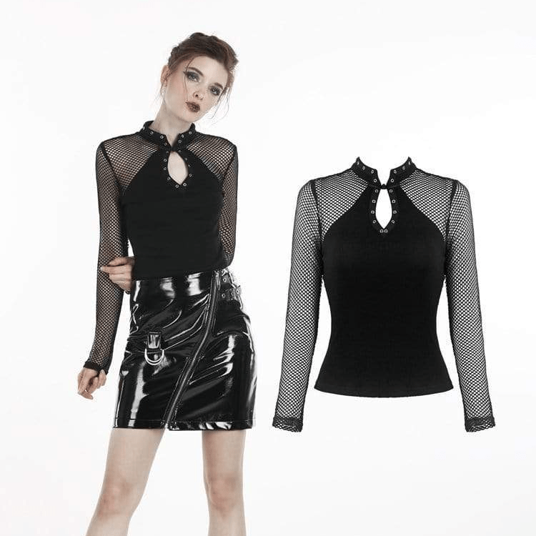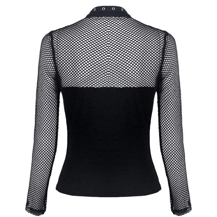 Damen-Punk-Oberteile mit Stehkragen und langen Ärmeln aus Netzstoff