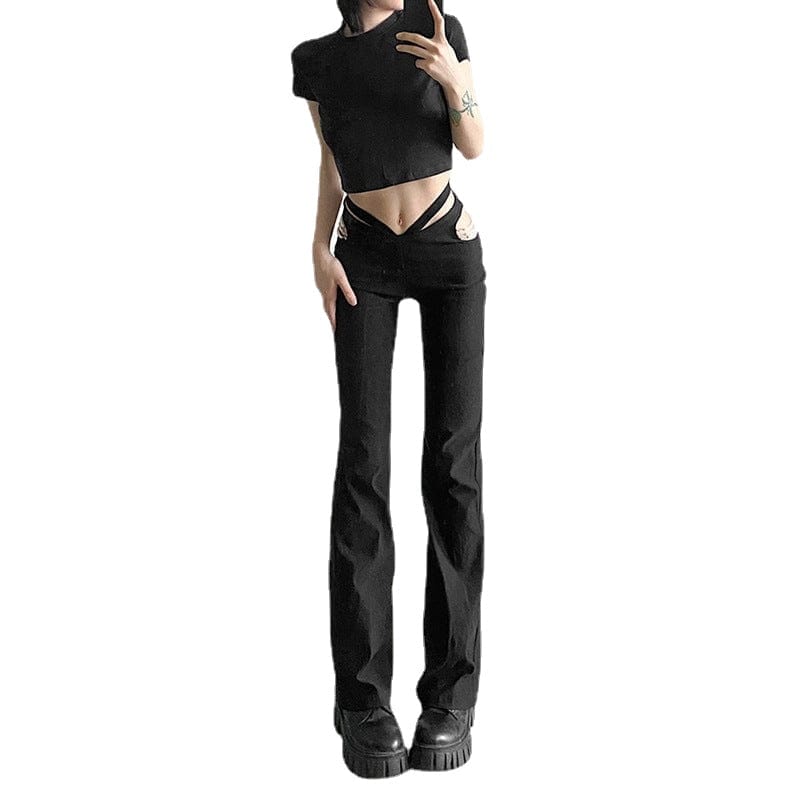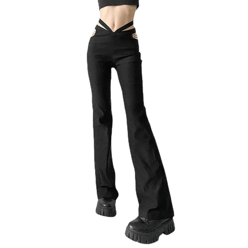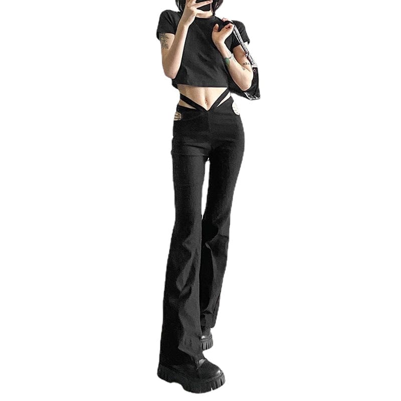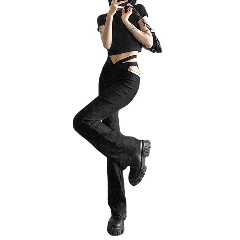 Damen-Punk-Schlaghose mit hohem Bund und Ausschnitt