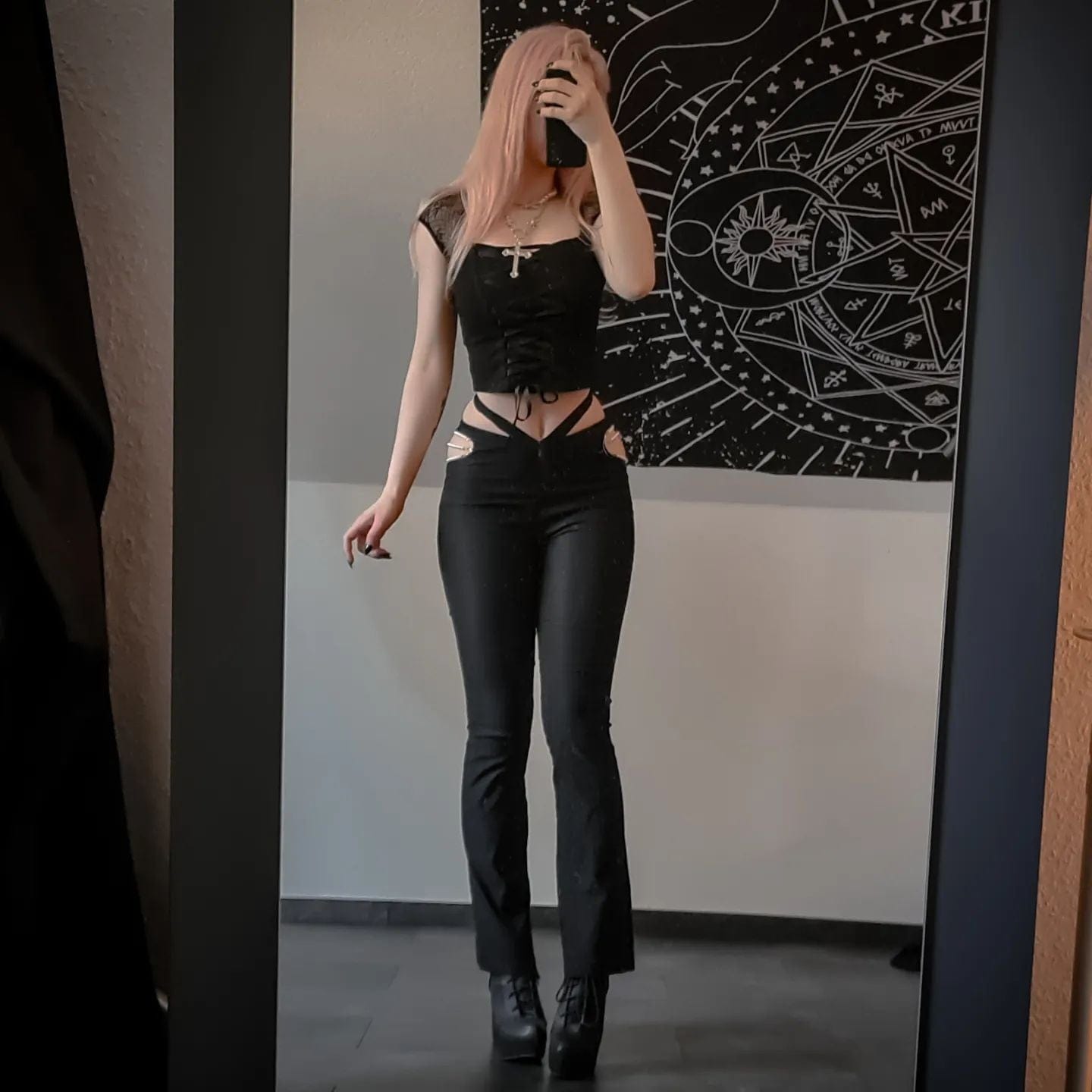 Kombinieren Sie diese Damen-Punk-Schlaghose mit hohem Bund und Ausschnitt mit einem passenden Gothic Punk Oberteil aus unserer Kollektion, um den perfekten rebellischen Look zu kreieren. Ergänzen Sie Ihr Outfit mit einem Paar aus unserer Auswahl an Gothic Hosen Damen, um Ihre einzigartige Ästhetik zu vervollständigen.
