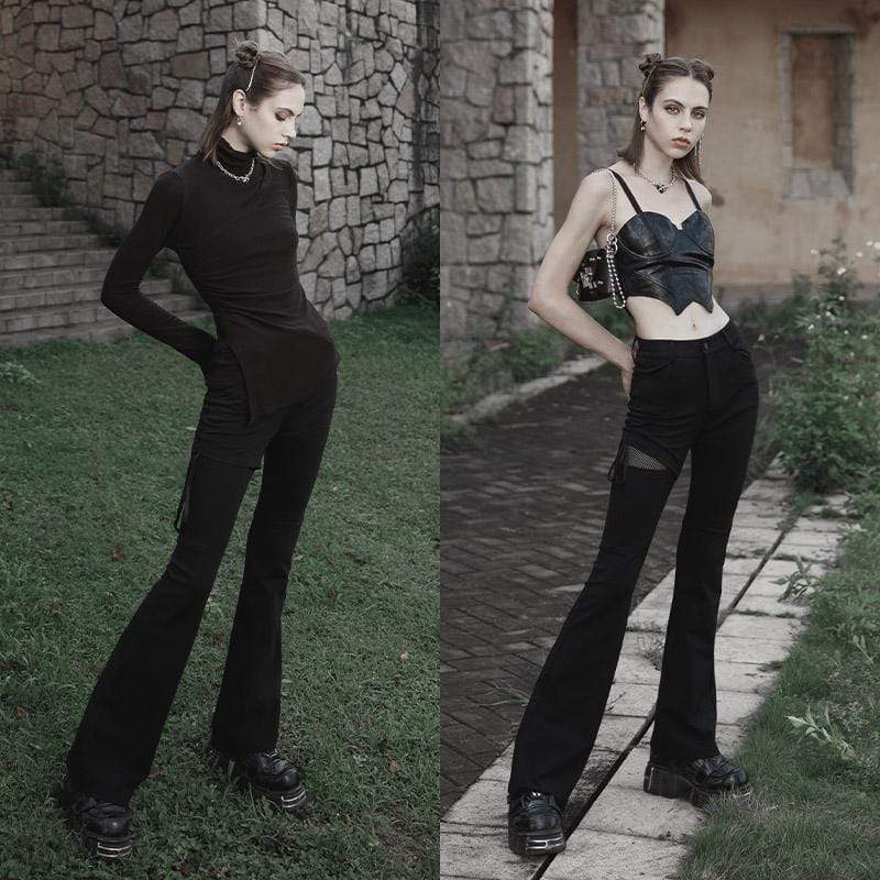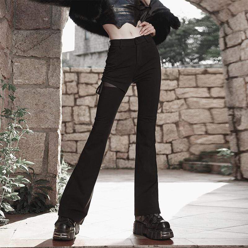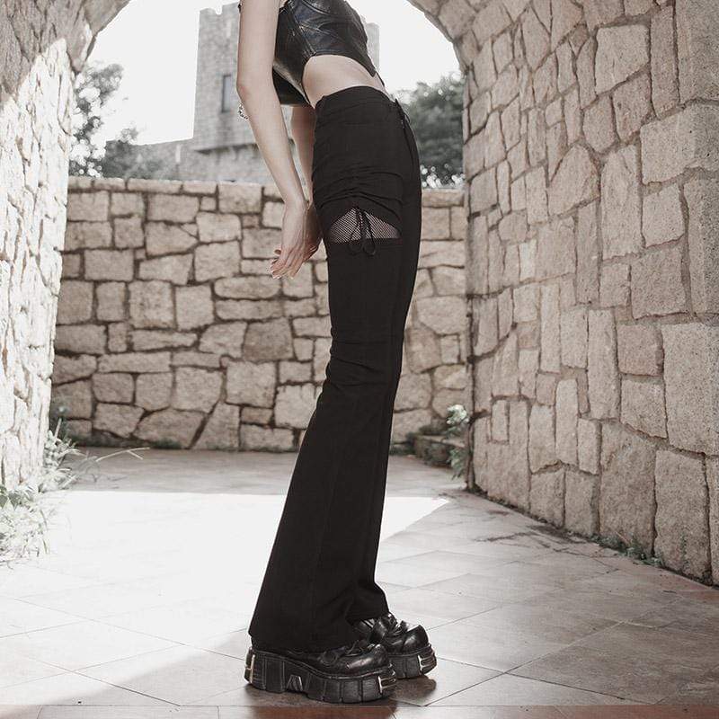 Damen-Punk-Schlaghose mit Kordelzug und Netzspleiß