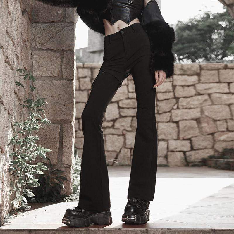 Entdecken Sie unsere Damen-Punk-Schlaghose mit Kordelzug und Netzspleiß, das ideale Kleidungsstück für alle, die den einzigartigen Gothic- und Punk-Stil lieben. Hergestellt aus hochwertiger Viskose und Polyester, bietet diese Hose eine Kombination aus Komfort und auffälligem Design. Sie ist perfekt für alle, die ein Statement setzen und ihren Look mit einer rebellischen Note abrunden möchten.