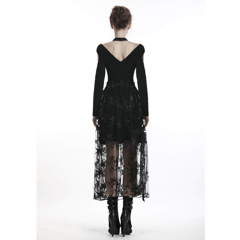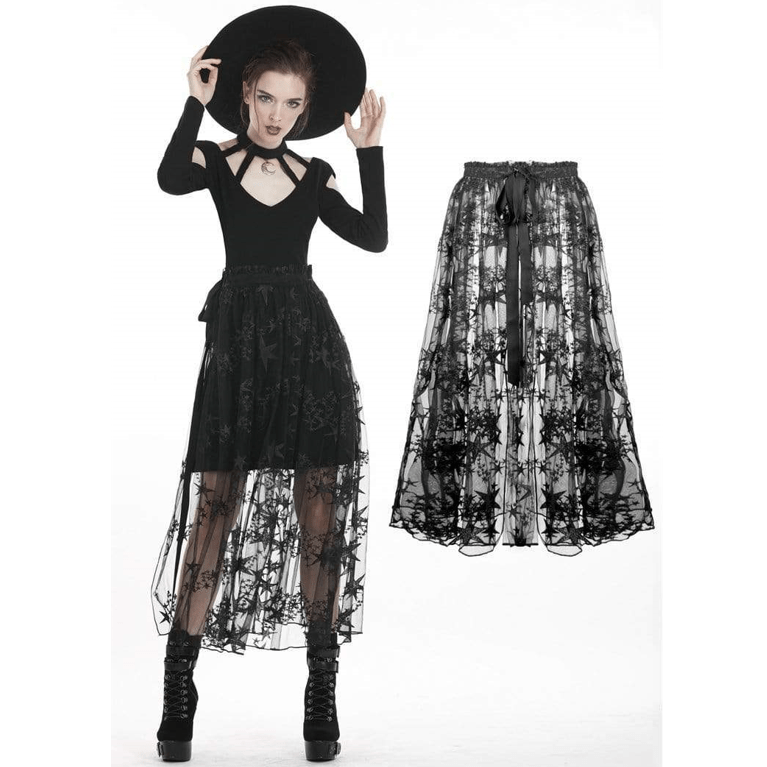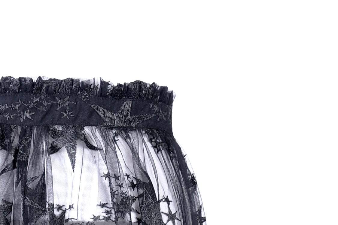 Verpassen Sie nicht die Gelegenheit, Ihren Kleiderschrank mit diesem Damen-Röcke aus durchscheinendem Sternennetz mit Verzierung zu bereichern. Ideal für alle Jahreszeiten und ein echtes Highlight für Liebhaber des Gothic-Stils!