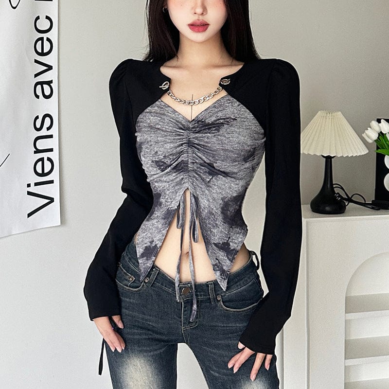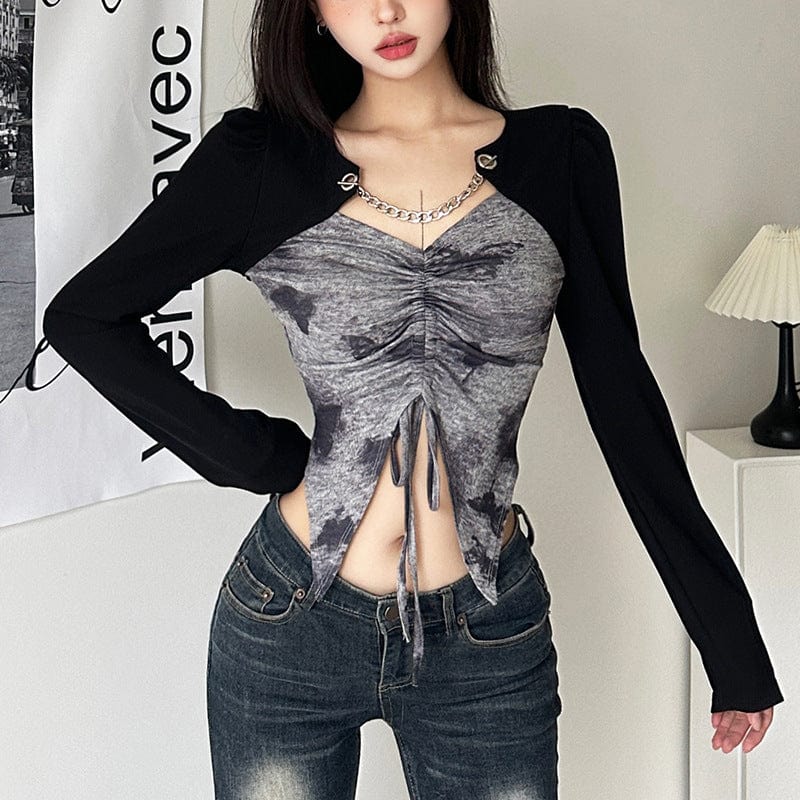 Damen-Schnürhemd mit Grunge-Schmetterlings-Print
