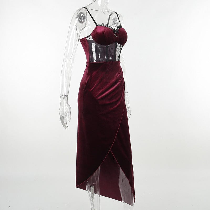 Damen-Slipkleid aus Samt mit unregelmäßigem Saum im Gothic-Stil