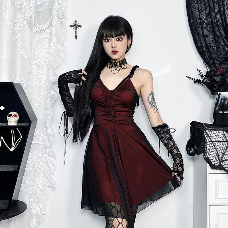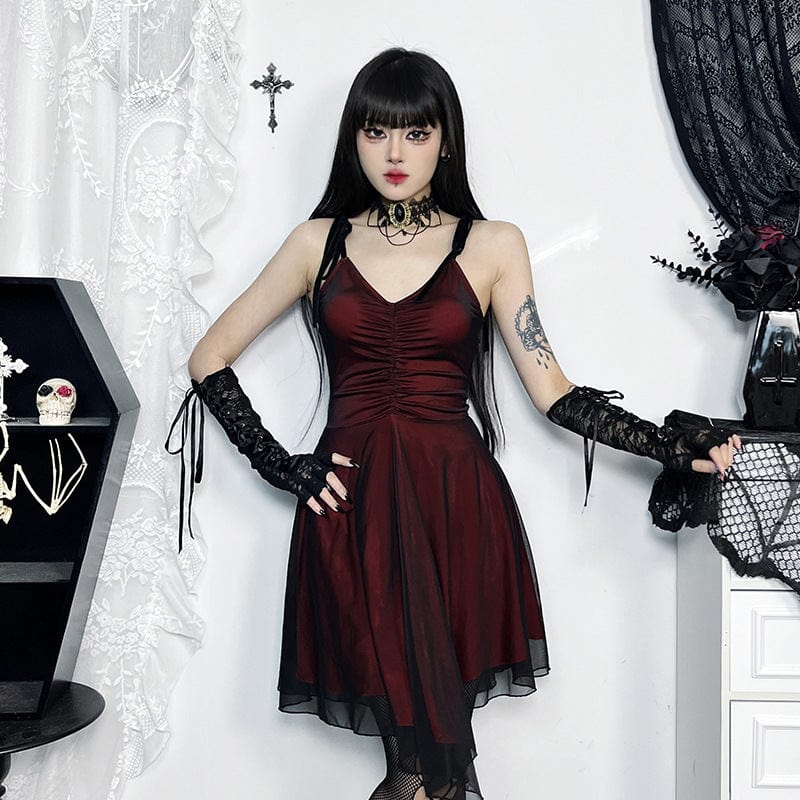 Damen-Slipkleid im Gothic-Stil mit Rüschen und Schnürung