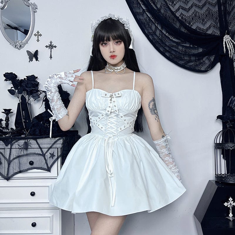 Damen-Slipkleid im Gothic-Stil mit Schnürung und Ösen
