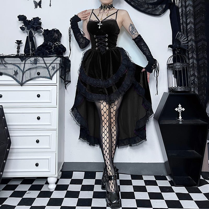 Entdecken Sie unser atemberaubendes Damen-Slipkleid im Gothic-Stil mit Spitzenspleiß, hoch/tief geschichtet, das perfekt die Essenz des Gothic-Stils einfängt. Hergestellt aus einer hochwertigen Mischung aus Polyester und Spandex, bietet dieses Kleidungsstück eine samtige Textur und außergewöhnlichen Komfort. Ideal für besondere Anlässe oder als Highlight Ihrer Gothic-Kollektion – dieses Slipkleid wird Ihre Garderobe revolutionieren.