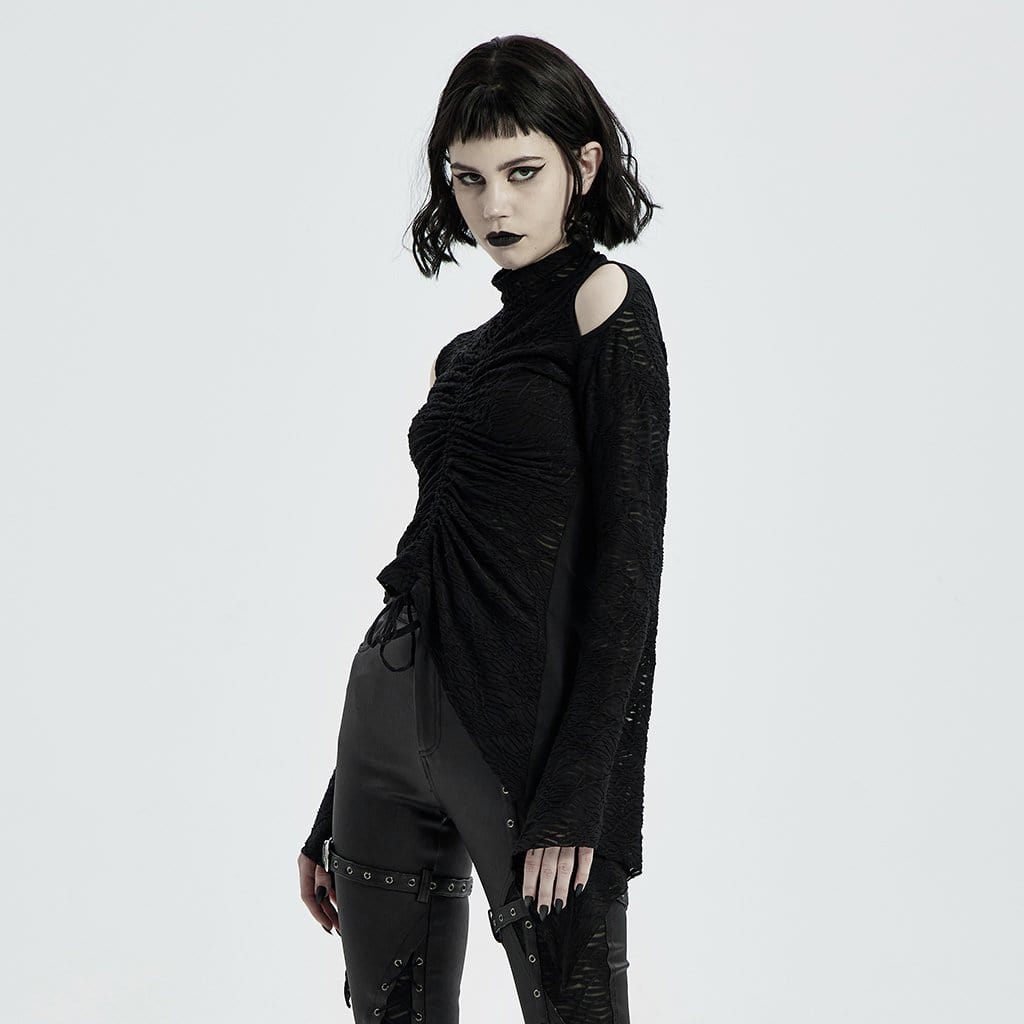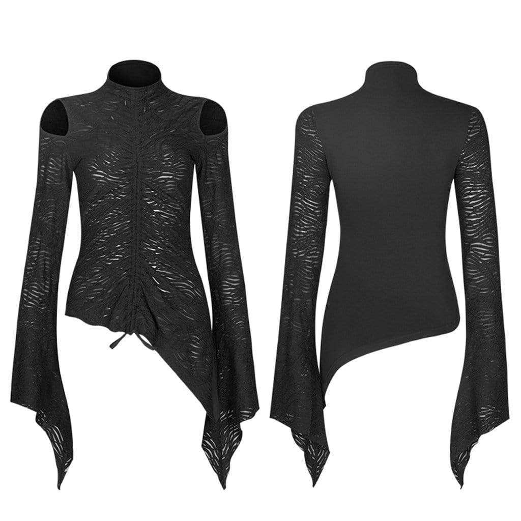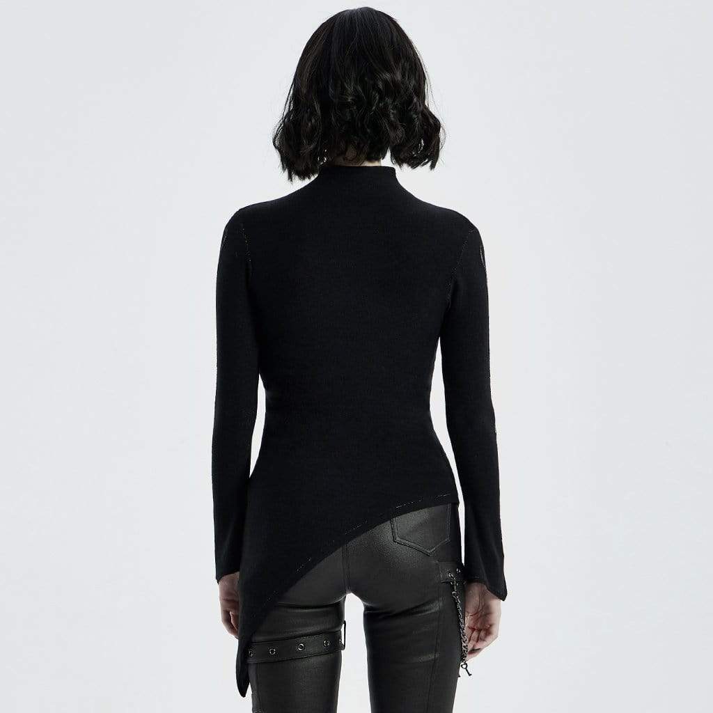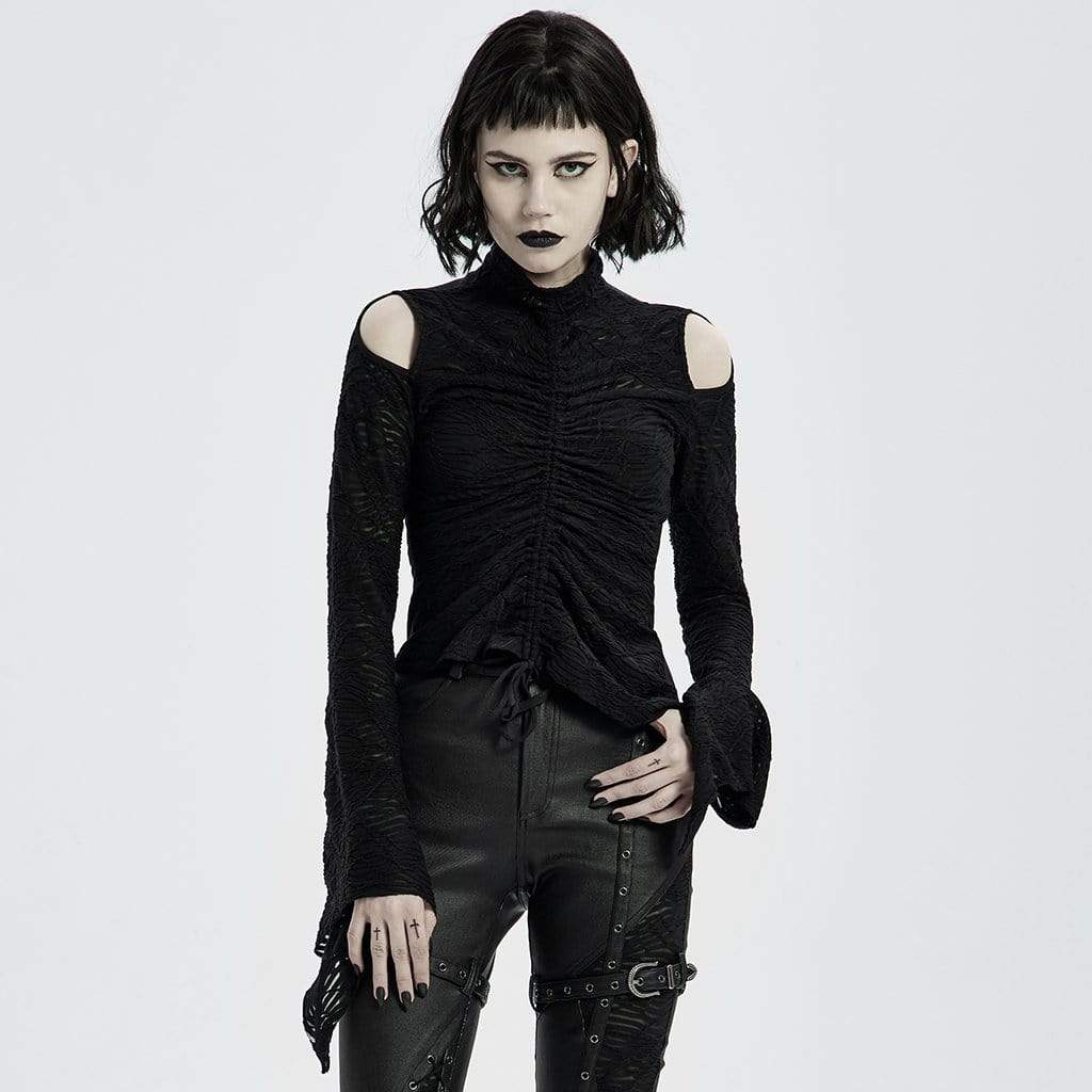 Damen-Strickoberteile im Gothic-Punk-Stil mit Ausschnitten an den Schultern und ausgestellten Ärmeln