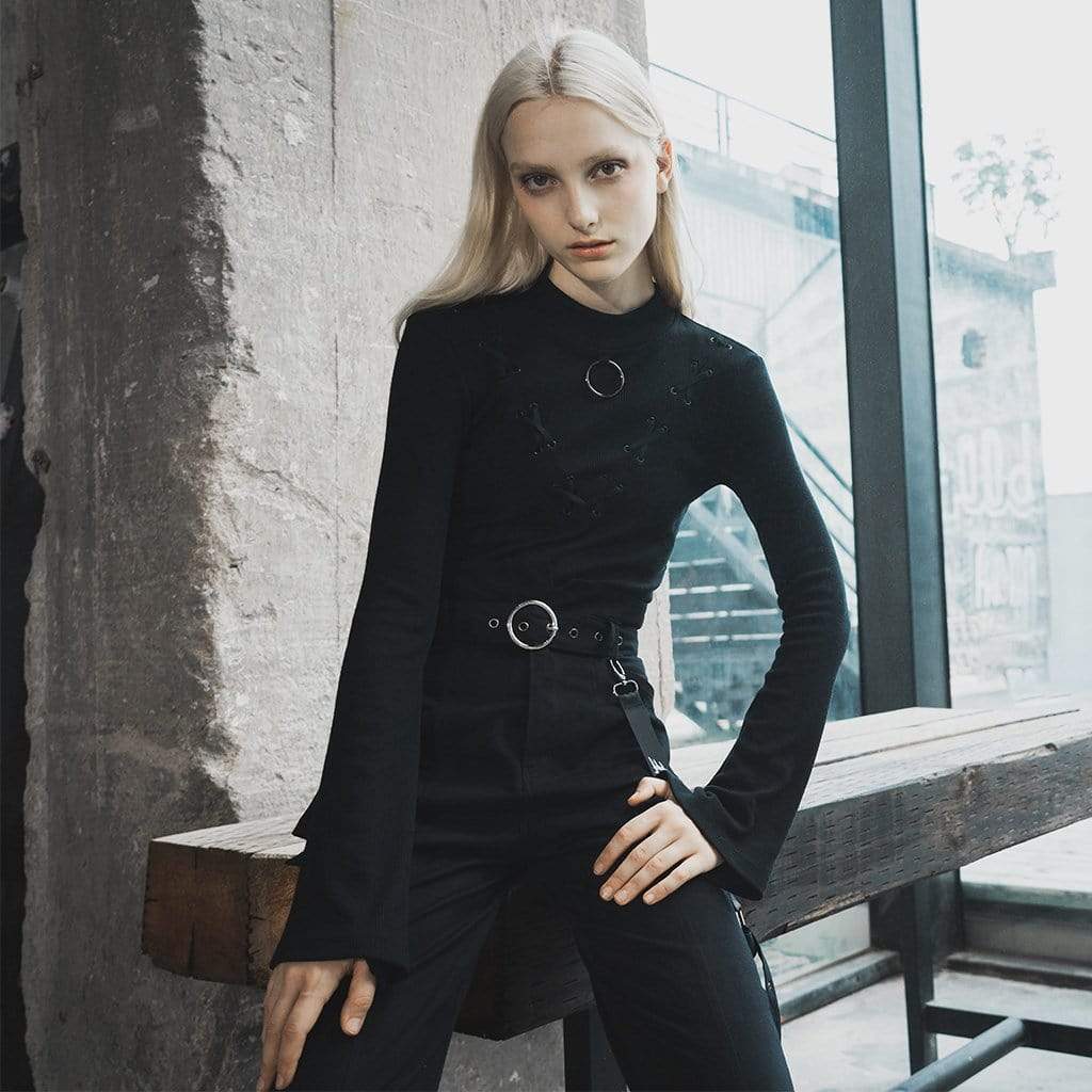 Damen-T-Shirt mit Gothic-Schnürung und ausgestellten Ärmeln