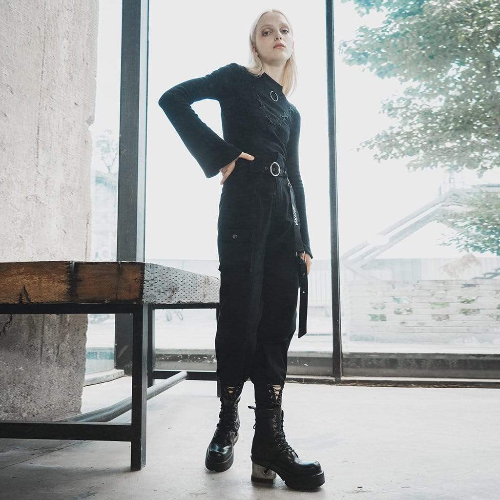 - Farben: Verfügbar in tiefem Schwarz, das jeder Gothic-Garderobe schmeichelt.