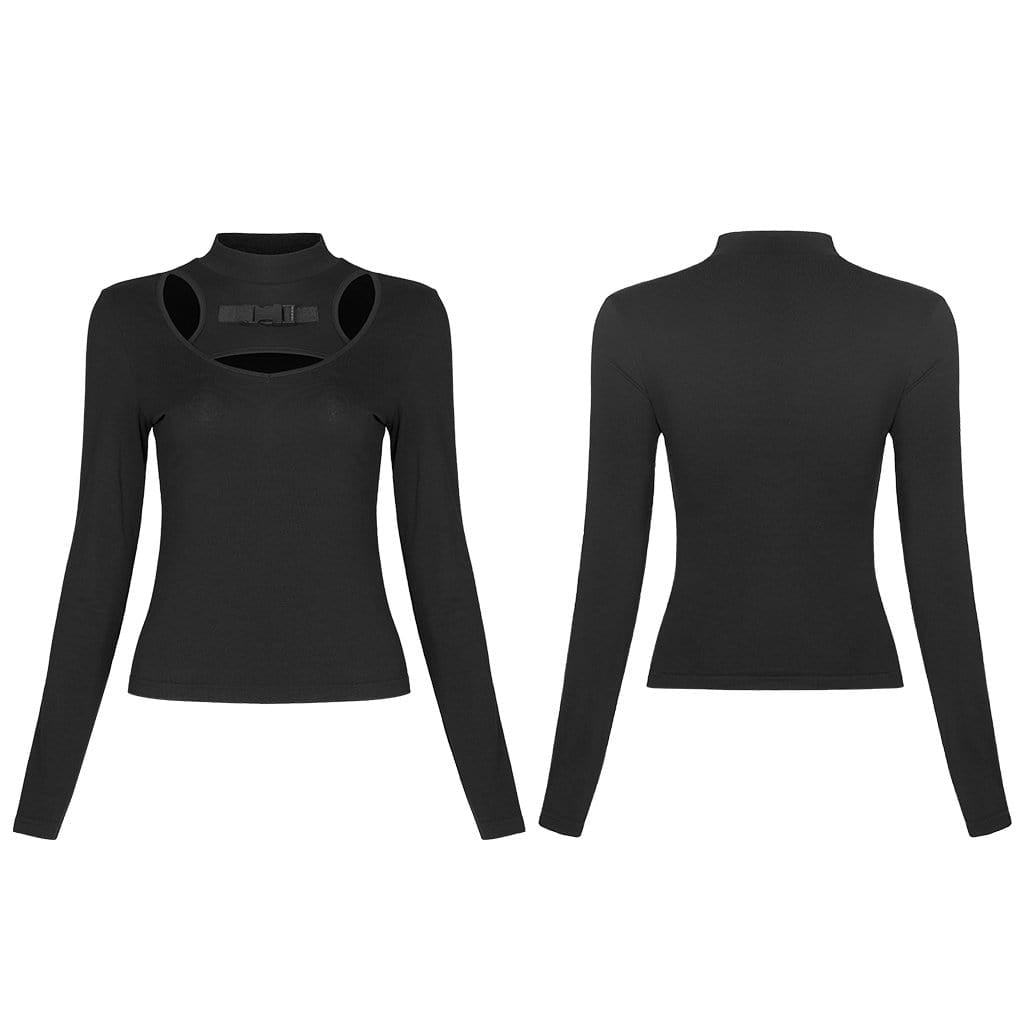 Damen-T-Shirt mit Punk-Ausschnitt und langen Ärmeln