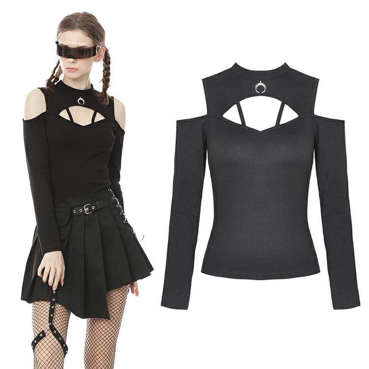 Damen-T-Shirt mit Punk-Ausschnitt und Mondausschnitt und langen Ärmeln