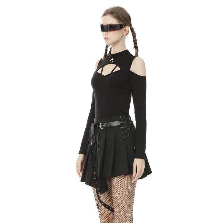 Kombinieren Sie dieses Damen-T-Shirt mit Punk-Ausschnitt und Mondausschnitt und langen Ärmeln mit einem T-Shirt aus unserer Gothic-Kollektion oder einer Gothic-Oberteil-Auswahl, um Ihrem Look noch mehr Ausdruck zu verleihen. Für einen abgerundeten Look, lassen sich unsere sexy Gothic Styles perfekt kombinieren.